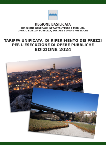 La Regione Basilicata aggiorna annualmente, ai sensi dell’art.41, comma 13, del D.lgs 36/2023, secondo le indicazioni di cui all’Allegato I.14, la Tariffa unificata di riferimento dei prezzi per l’esecuzione di opere pubbliche (Prezzario).