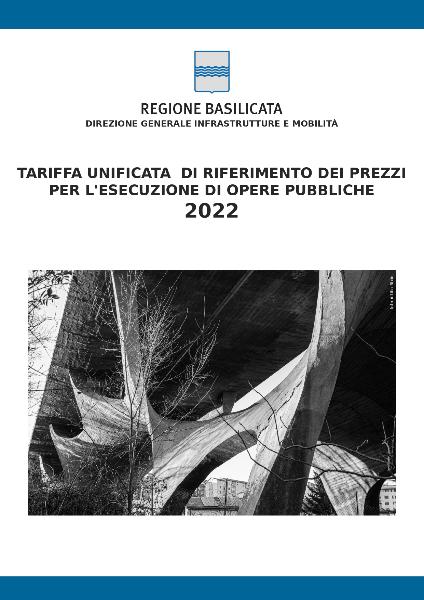 Sul Bollettino Ufficiale della Regione n. 13 del 16 marzo 2022 (Parte 1) è disponibile il relativo documento completo (DGR 14 marzo 2022, n. 108 – Approvazione della "Tariffa Unificata di riferimento dei prezzi per l'esecuzione di Opere Pubbliche della Regione Basilicata" - Edizione 2022) all’indirizzo http://burweb.regione.basilicata.it/bur/ricercaBollettini.zul